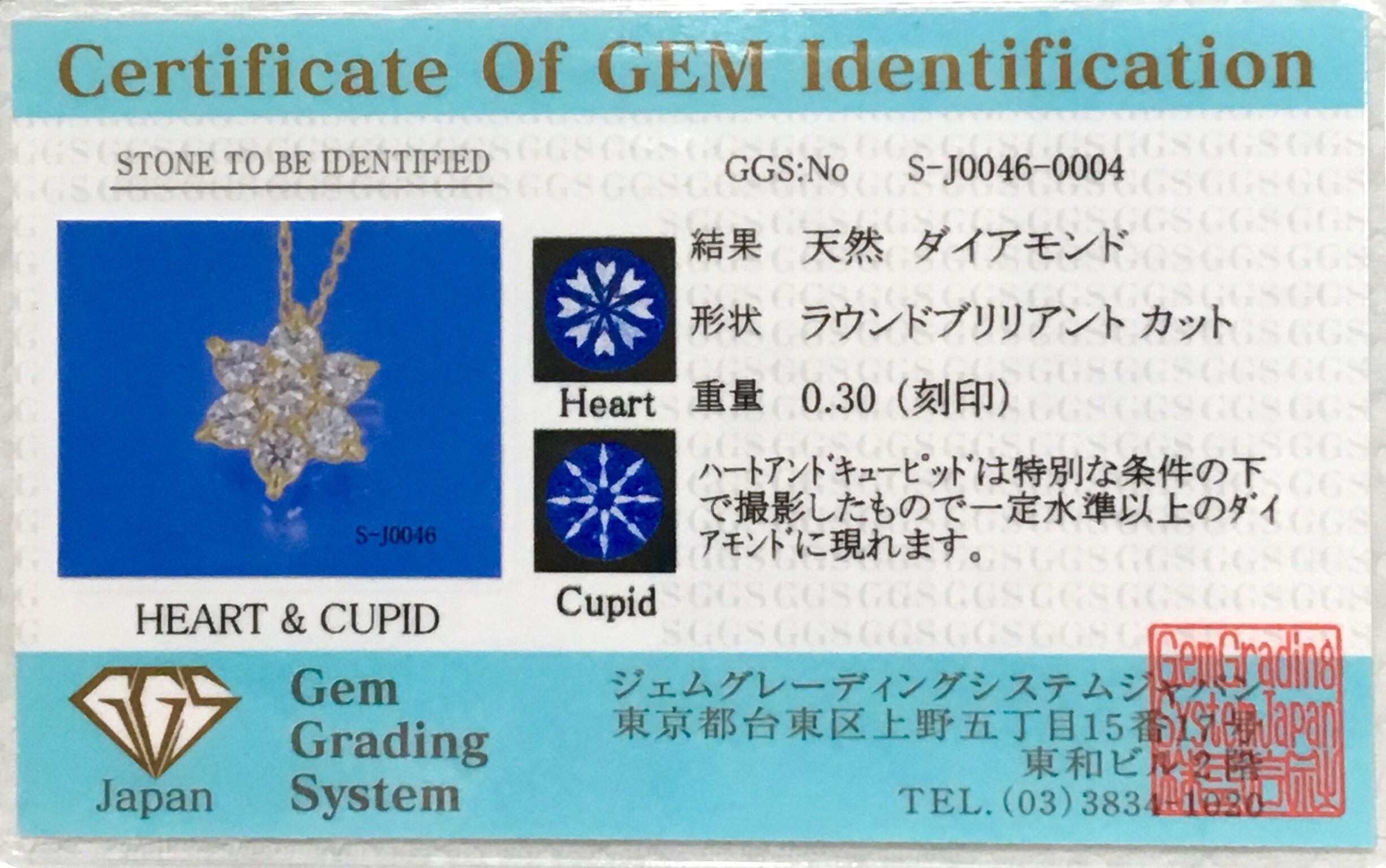 そんなハート&キューピッドのダイヤモンド7石、トータル0.3カラットをフラワー状に配置した、可愛らしいネックレスです。