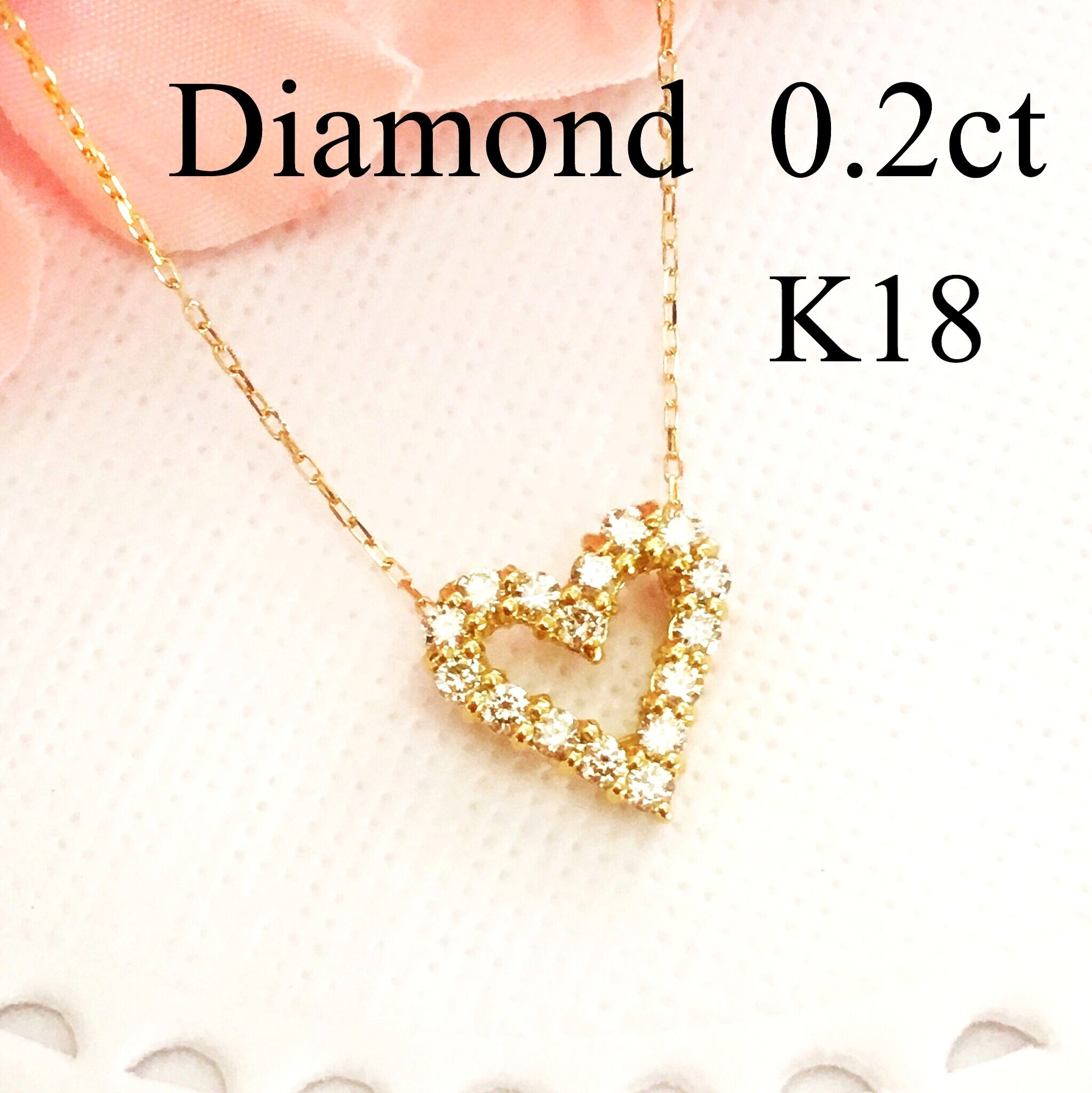 ダイヤモンド ネックレス ハートデザイン K18 0.2カラット